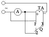 電流互感器接線如圖3所示。圖中Q為單級(jí)雙投開關(guān)。當(dāng)開關(guān)投向"1"時(shí),電流表的讀數(shù)較小,投至"2"時(shí)讀數(shù)較大,則證明是減極性,杏則為加極性。